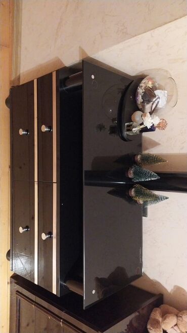 Qara TV tumbası və media şkafı - Material: parlaq qara MDF korpus, üst hissə qalın şüşə panel (kənarları cilalı). - Üst platforma: geniş və möhkəm səth – TV, monitor və dekor üçün uyğundur. - Orta...