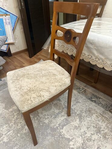 Klassik üslubda yemək dəsti - Dəst: böyük düzbucaqlı masa + 6 ədəd stul keyfiyyətli materialdı,heç bir problemi yoxdu.Ünvan Sumqayıt 13cü mikrarayon
