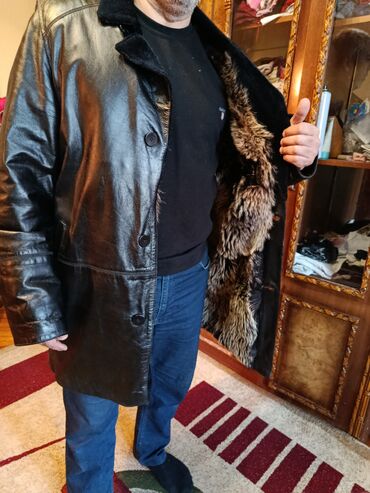 Məhsul: Kişi dəridən palto - Material: təbii qara dəri - Yaxa: iri, sıx tüklü təbii kürk yaxalıq (ön hissədə aşağıya qədər uzanan) - Daxili hissə: isti, tüklü astar - Bağlanma: ön hissədə düymə - ...