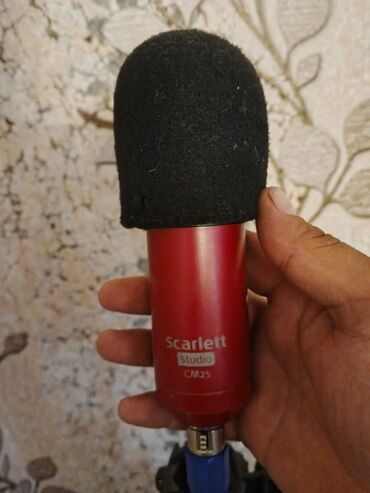 - Scarlett Studio CM25 kondensator mikrofonu (pop-filtr köpük başlıqla) və stolüstü/tripod tutucu