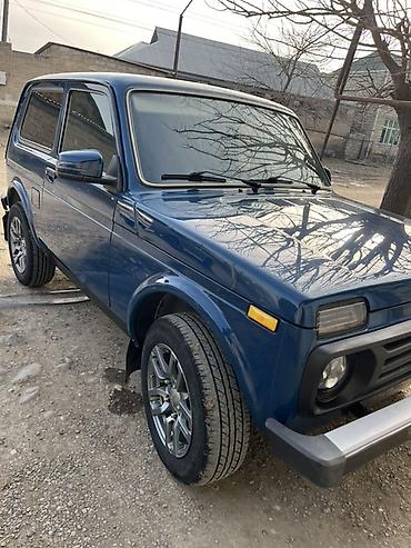 Lada 4x4 (Niva) — mavi rəngli, 3 qapılı off-road SUV.