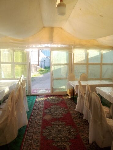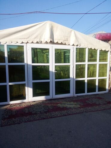 - Çadır konstruksiyası: ağ rəngli örtük, ön hissəsi şüşəli/plastik panellərlə bağlanan giriş qapısı olan karkaslı sistem. Günəş işığını keçirir, küləkdən və yağıntıdan qoruyur.