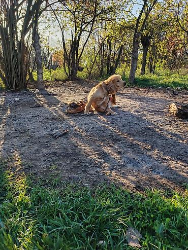 Golden Retriever – erkək, krem rəngli, orta ölçülü it - Cins: Golden Retriever (uzun, dalğalı krem rəngli yun, gur quyruq) - Cinsiyyət: Erkək - Xasiyyət: Mehriban, insanayönümlü, aktiv; oyuna və t...