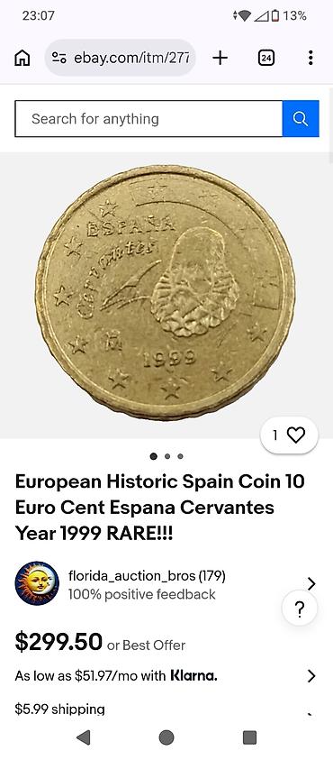 Məhsul: İspaniya 10 avro sent (1999) – “Cervantes” dizaynı