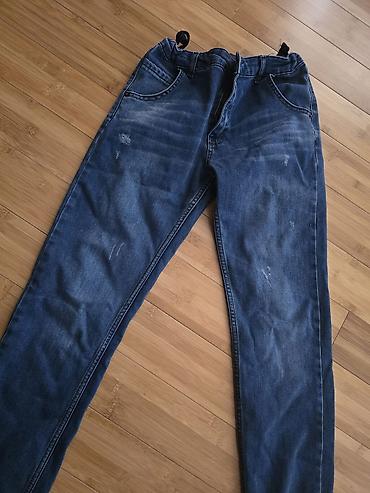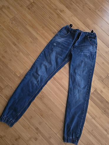 Uşaq cins jogger şalvarı - Model: Jogger - Rəng: Açıq mavi (yüngül yuyulma effekti) - Ölçü: Etiketdə 10–11 yaş, 146 sm - Bel: Elastik kəmər və ağızlı ağ iplə tənzimləmə - Aşağı hissə: Elastik manj...