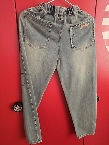 Uşaq üçün cins şalvar – 12 yaş - Rəng: açıq mavi, yüngül yuma effektli - Model: rahat kəsim, daralan balaq - Bel: elastik rezinli bel + düyməli ön qapanma - Material: klassik denim parça - Ciblər:...