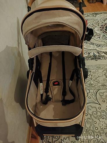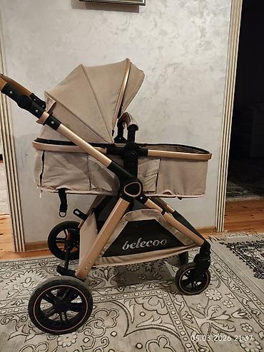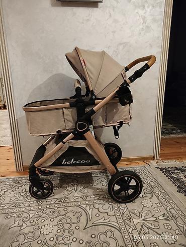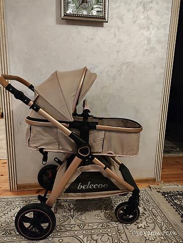 Belecoo uşaq arabası – bej rəng, qızılı çərçivə