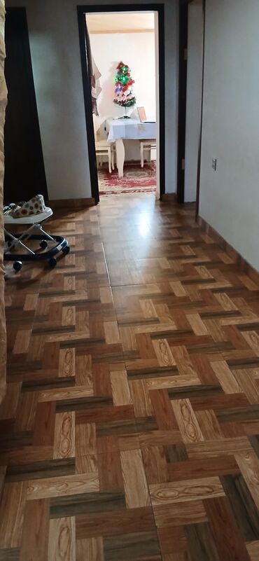 - Döşəmə: 1-ci mərtəbədə parket naxışlı kafel, otaqlarda taxta döşəmə