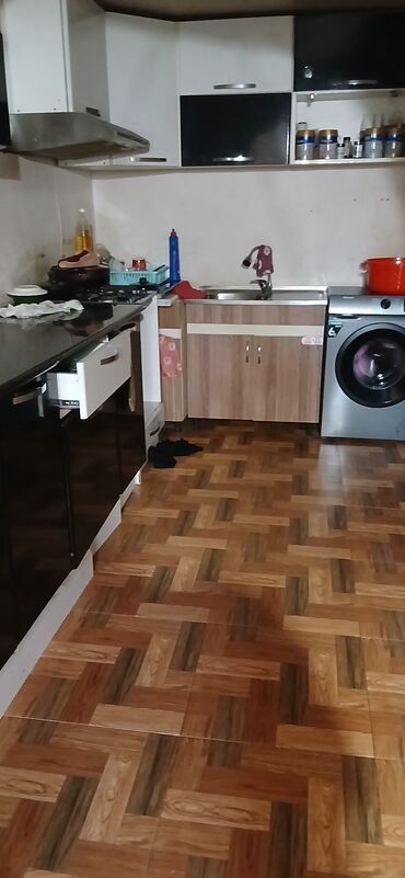 - Mətbəx: daxili aspirator, qaz plitəsi üçün yer, üst-alt dolablar, paslanmayan polad lavabo, paltaryuyan üçün niş