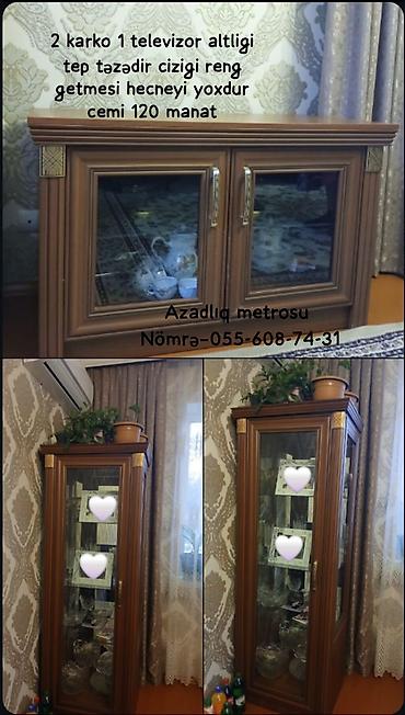 Ağır, sanballı mebellərdir. Qorka və barnik əla vəziyyətdədir. Güzgülünün isə sürməsində balaca qopma var, bərpa oluna bilər. Ona görə münasib qiymətə qoyulub. ev balaca olduğu üçün satılır.