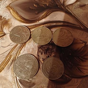 - Rusiya Federasiyası sikkələri: üç ədəd 2 rubl. Ön tərəfdə nominal “2 РУБЛЯ”, bəzək elementləri; arxa tərəfdə iki başlı qartal və “БАНК РОССИИ”, birində il 2007 görünür.