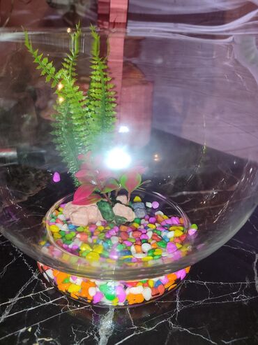 Akvarium dest satılır qapaqlı işıqlı filtir rengli daşı 10 litr su tutur