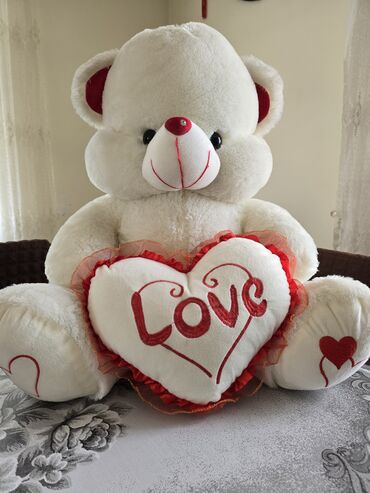 Böyük ölçülü plyuş ayıcıq – romantik hədiyyə - Rəng: ağ, qırmızı