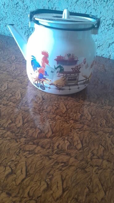 Şəkildə ölçüləri var qulpu və ağız hissəsi qırılıb kleylənib,Şəkildədə gösterilir. keçmişin çaydanıdı, istifadə edilmeyib suvener kimi qalmışdı. sovetin çaydanıdı qədimidir. Litrini dəqiq bilmirəm....