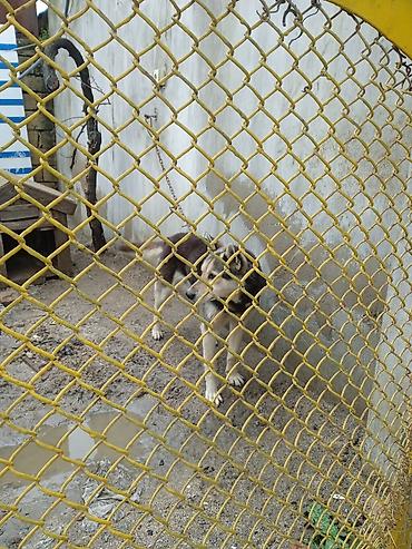 Qəfəsdə saxlanılan it – orta boy, qara-qəhvəyi və krem rəngli tüklü. Qulaqları dik, quyruğu tüklü, bədəni möhkəm quruluşludur. Uzun zəncirlə bağlanıb, yanında taxta köşk və su qabı görünür. Mühafizə və həyət üçün uyğun ola biləcək, ayıq və çevik görünüşlü itdir. Şəkillərdə it bütün detalları ilə təqdim olunub.