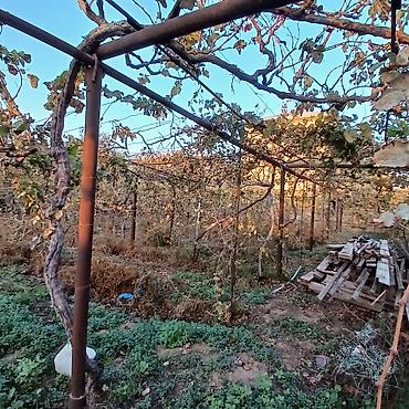 Torpaq sahəsi - Həyətyanı, daş hasarla tam əhatə olunmuş torpaq sahəsi,yalnız giriş hisəssi setka ilə hasarlanıb - Daxili giriş qapısı və tor hasarlı giriş hissəsi görünür - Düz relyef, tikinti üç...