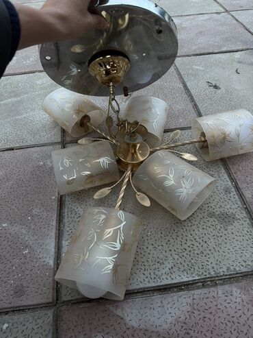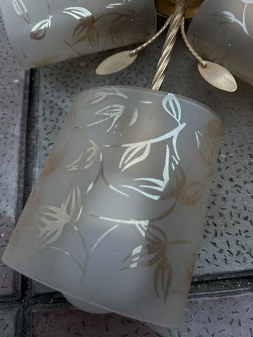 Şüşə-kristal tavan lampası (plasfon) - Forma: dairəvi, yarı-qapalı tavan tipli - Material: parlaq xrom rəngli korpus, kəsimli kristal elementlər və şüşə bəzəklər - Dizayn: ağ fon üzərində qızılı ç...