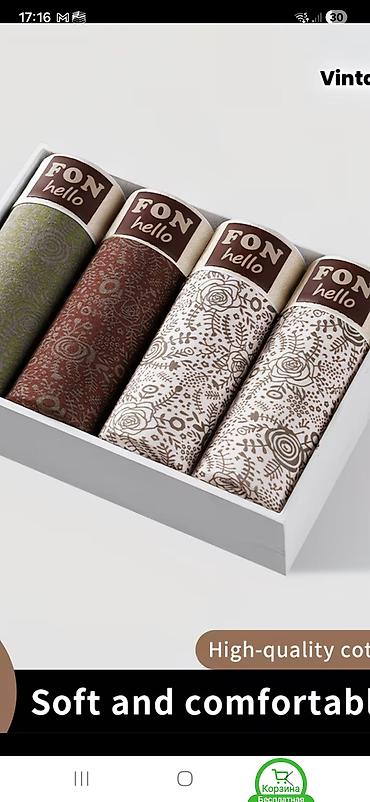 Məhsul: Kişi bokser şortu dəsti Ölçü: 2XL Material: pambıq Say: 7 ədəd Təsvir: - Nəfəsalan, yumşaq və komfortlu pambıq parça - Elastik, naxışlı geniş bel rezini (FON hello etiketli) - Çoxrəng...
