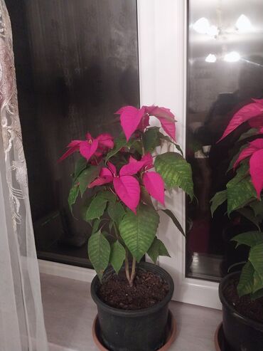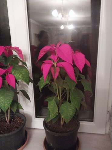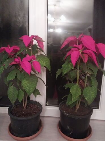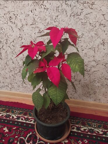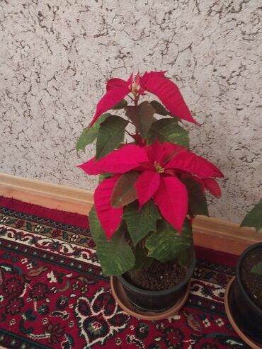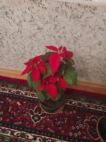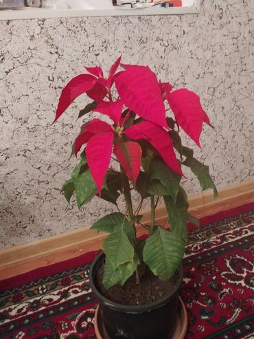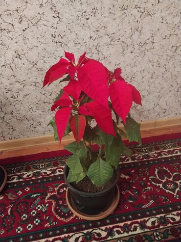 Qırmızı poinsetiya (Euphorbia pulcherrima) – dekorativ qapalı bitki - Rəng: parlaq qırmızı braktlarla yaşıl, iri, damarlı yarpaqlar - Çiçəklənmə: qış mövsümündə dekorativ braktlar uzun müddət rəng...