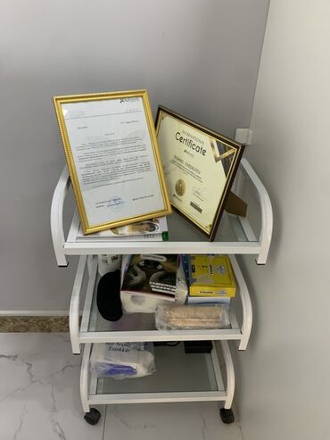- Komplekt üçün salon arabası (3 rəfli, təkərli), aksesuar və sərfiyyat materialları üçün əlverişli saxlanma imkanı