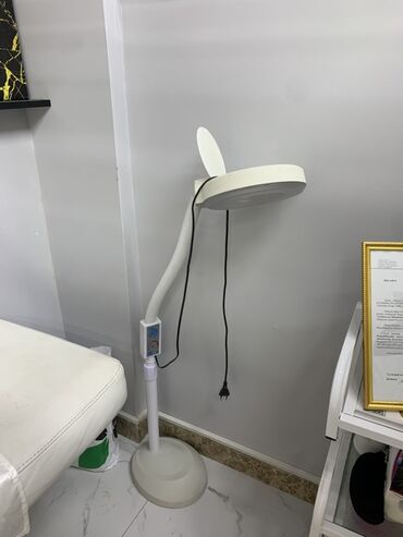 - Döşəmə tipli böyüdücü LED-lupa lampa: sərt əsas, çevik qol, açılıb-bağlanan linza qapağı, şəbəkə ilə işləyir