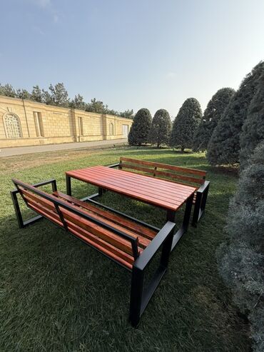 - Komplekt: 1 ədəd düzbucaqlı stol + 2 ədəd arxalı skamya.