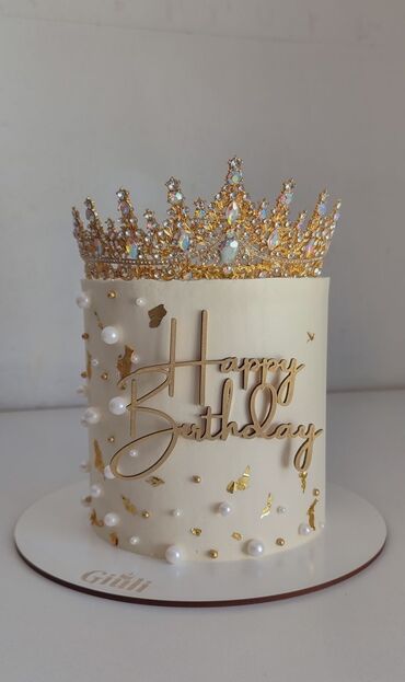 - Topperlər: “Happy Birthday” yazısı, yaş rəqəmi (fərdiləşdirilə bilər), qızıl tac aksesuarı.