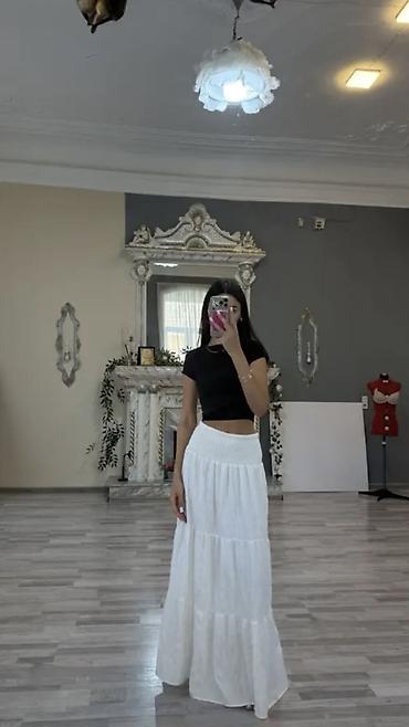 Ağ bohem üslublu uzun ətək