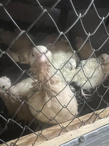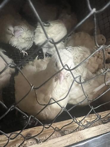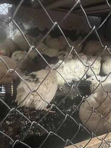 Broylər cücələri – ağ rəngli, ətlik istiqamət. - Növ: Broylər (sürətli böyüyən ətlik xətt) - Rəng: ağ lələk, qırmızı daraq - Qidalanma: quru yemliklər və asma yem qabları, su qabları ilə saxlanılır...