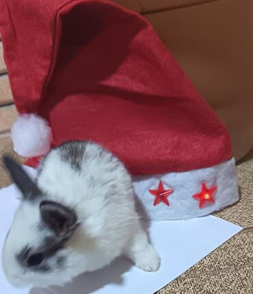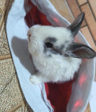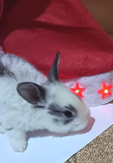 Dovşanlar – dekorativ ağ rəngli, bəzi fərdlərdə qəhvəyi/xallı naxışlar. - Növ: dekorativ ev dovşanı (kiçik ölçülü). - Rəng: əsasən ağ, qulaqlarda və kürəkdə yüngül qəhvəyi/xallı işarələr. - X...