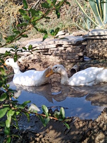 Pekin ördək 2 ədəd cütlük 6-8 aylıq -yumurta verir - Rəng: tam ağ lələklər, narıncı dimdik və pəncələr - Növ: ev ördəyi (suda üzməyə, həyət şəraitinə uyğun) - Aktiv və çevik, həyət-baca üçün ideal ...