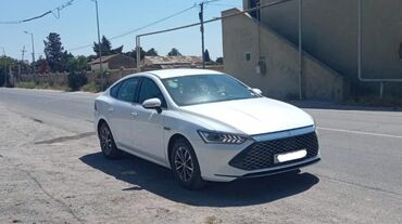 BYD Qin Plus DM-i sedan - Kuzov: ağ rəngli, aerodinamik xəttlər, tam LED ön faralar, arxa hissədə LED “light bar”, BYD və “Qin” emblemləri - Güc qurğusu: DM-i hibrid sistemi (benzin mühərriki + el...