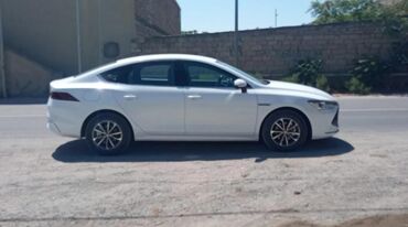 Satılır: Elektrik sedan – BYD Qin Plus (arxa hissədə “Build Your Dreams” yazısı ilə). Xüsusiyyətlər: - Kuzov: ağ rəngli sedan, aerodinamik xəttlər, tam enli LED arxa işıq zolağı - Yanacaq növü: el...