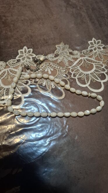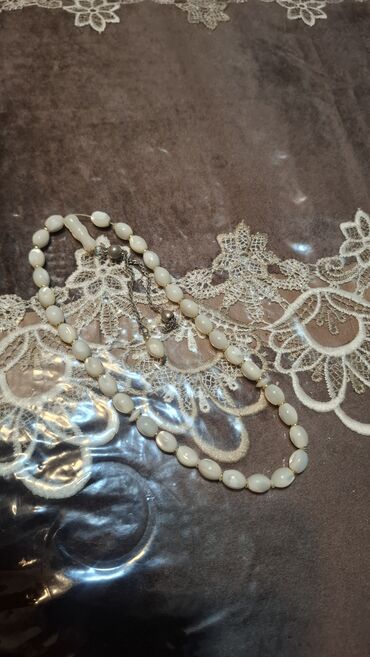 - Material: oval formalı ağ muncuqlar (parlaq səthli), aralarda nazik ara hissəciklər