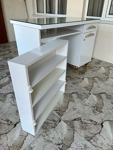 Ağ rəngli iş/dirnaq stolu və ayrıca rəfi