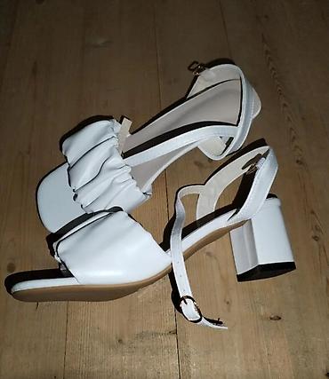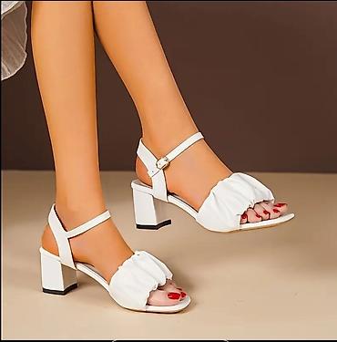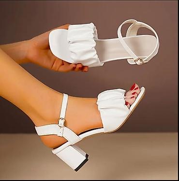 Ağ qadın sandalı – topuqlu, zərif dizayn