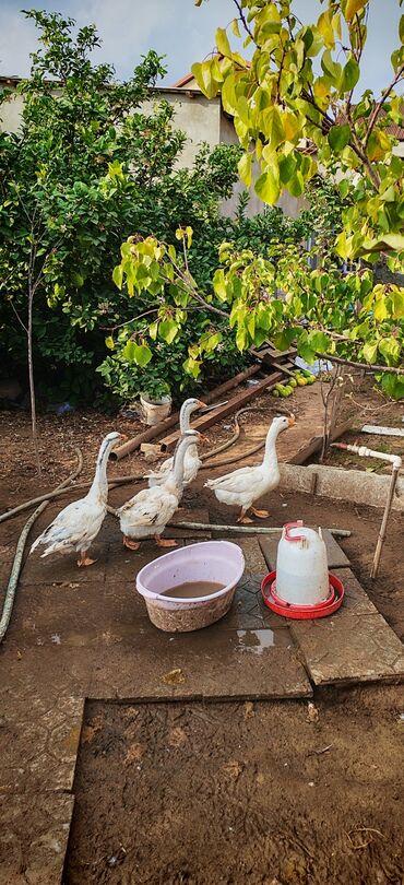 Satılır: Qaz sürüsü - Şəkillərdə görünən 6 baş qaz - Rənglər: ağ və qəhvəyi-boz (qarışıq) - Boyunları uzun, bədənləri iri, həyət şəraitinə tam uyğun - Təbii yemləmə ilə böyüdülüb, sərbəst gəzintiy...