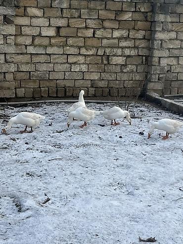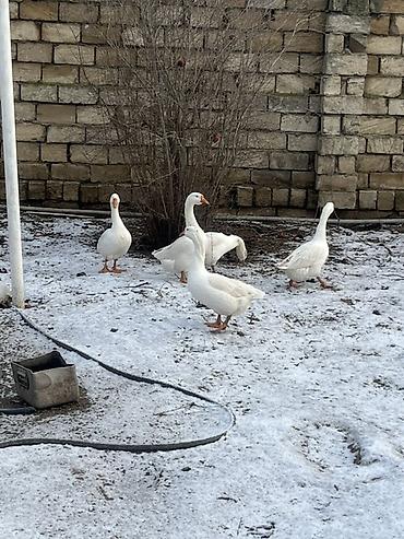Qazlar satılır - Növ: ev qazı (ağ rəngli, aralarında bir-iki boz qarışıq fərd var) - Say: şəkillərdə 6–7 baş görsənir - Yaş qrupu: yetkin/iri fərdlər - Təyinat: damazlıq və ya ət üçün münasib - Qi...