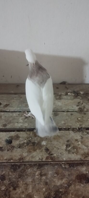 - Ümumi görünüş: Bədəni tam ağ, boyun və kürək hissəsində açıq boz/qəhvəyi ləkə, quyruq ucu solğun boz tonlarda.