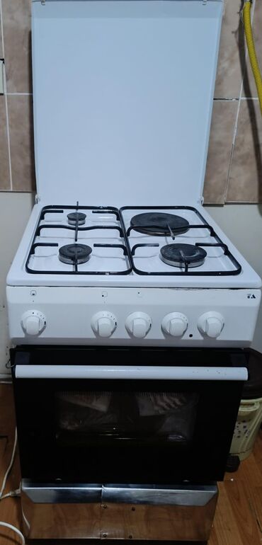 Quraşdırılan kombinə edilmiş soba üstü (plita) - 4 ocaq gözü: 3 qaz + 1 elektrikli disklə/metal səth, möhkəm çuqun dəmir barmaqlıqlar - Sağ tərəfdə mexaniki idarəetmə üçün 4 fırladıcı düymə - Hər ...