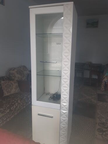 Ağ rəngli şüşəli vitrin şkafı – dekorativ 3D panelli.