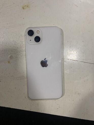 Məhsul: iPhone 13 (ağ rəng) • Yaddaş: 128 GB • Batareya sağlamlığı: 89% • Kamera: ikili arxa kamera, LED flaş • Korpus: arxa hissə ağ, Apple loqolu • Qiymət: 700 m • Qeyd: üzərində “cızıgı belə yox...
