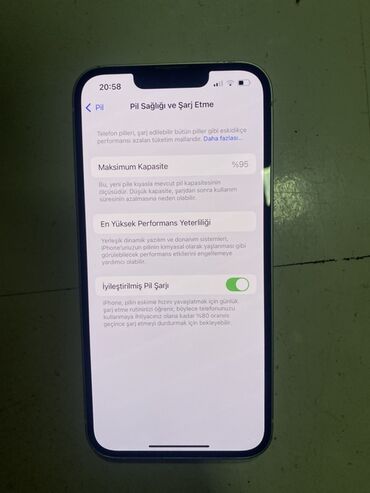 - Batareya: “Pil Sağlığı” bölməsində maksimum tutum 95% (şəkildə göstərilib), “İyileştirilmiş Pil Şarjı” aktiv