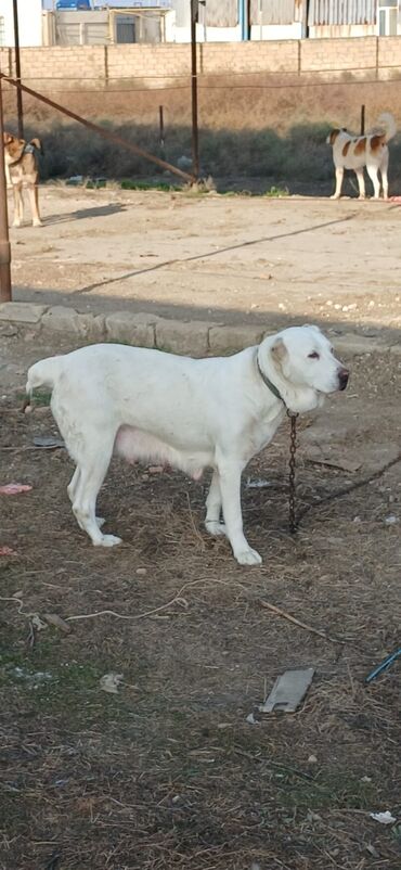 Məhsul: iri cüssəli ağ rəngli it (erkək) Təsvir: - Cins tipi: Alabay/Orta Asiya çoban tipli - Rəng: tam ağ, bədənində açıq krem ləkələr - Cinsiyyət: erkək - Quyruq yuxarıda daşıyır, güclü skelet q...
