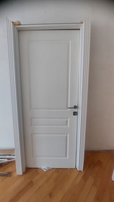 - Dəst: qapı yarpağı, qutu/korobka və dekorativ platbandlar (solda‑sağda şaquli, yuxarıda üfüqi)