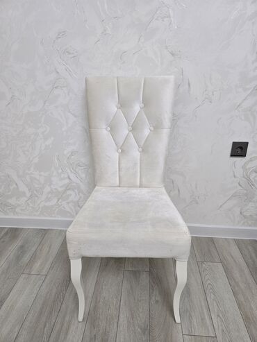 Ağ rəngdə klassik dizaynlı yumşaq yemək otağı stulu ustubde like zad ola biler 5 ədəd var qiymet 10azn 5inde goturen 40azn - Material: parça üzlüklü oturacaq və bel hissə, ağ rəngli ağac karkas - ...