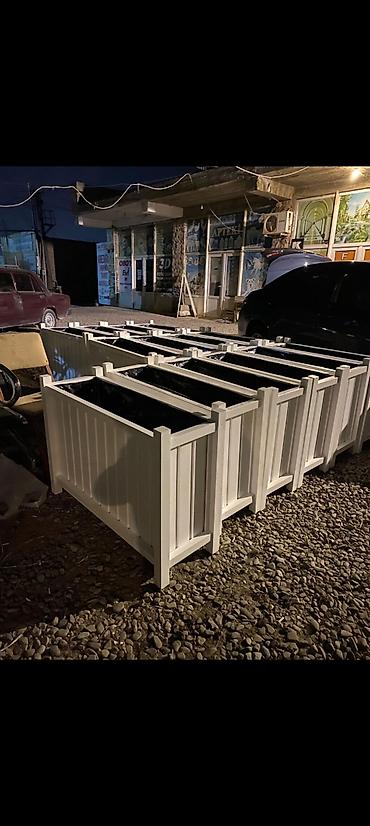 Təsvirlərdə bir neçə ədəd mövcuddur. Ölçülər vizual olaraq orta-hündürlükdə, uzunluğu enindən xeyli çox olan modeldir. Ağ fasadlı məkanlarla, eləcə də kontrastlı dizaynlarla rahat kombinasiya olunur. Açıq havada yaşıllaşdırma və zonalama üçün praktik həll.