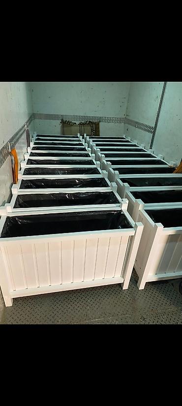 Ağ rəngli dekorativ taxta çiçək qutuları (uzunsov balkon/bağça