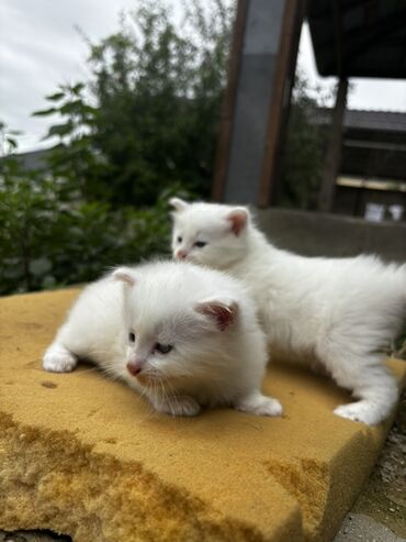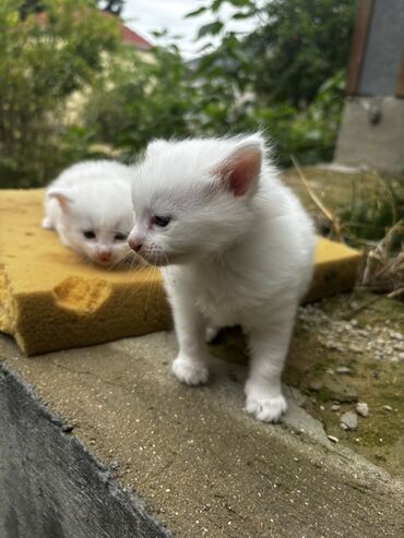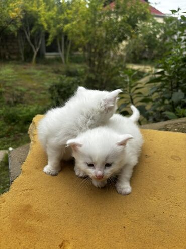 Ağ tüklü, dəyişməyən mavi göz rəngi, balaca şinşilla 3 ədəd erkək pişik balalası,aktiv, sağlam,55 günlük,qum mədəniyyəti var,