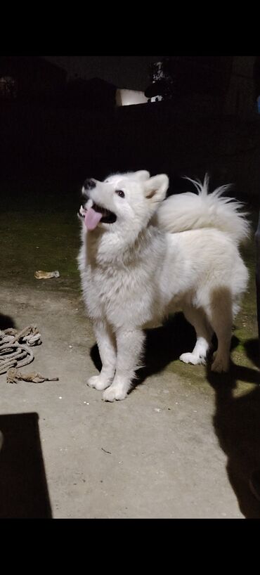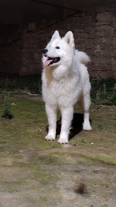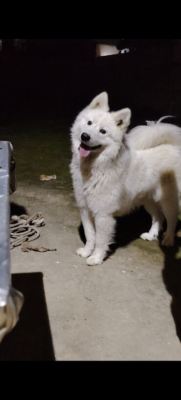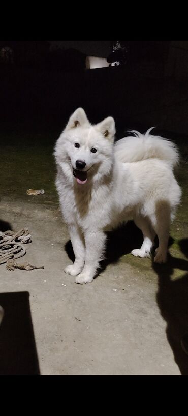 Təcili satılır. 9 ayliqdir. Citdi sexlər narahat etsin. Cinsi SMOYED. Ağ tüklü, iri ölçülü, sıx ikiqat yunu olan gözəl it. Üzündə tünd burun, dik qulaqlar və yumru, ifadəli gözlər; uzun, bol tüklü quyruq belin üzərinə doğru yığılır. Atletik quruluş, güclü döş qəfəsi və möhkəm pəncələrə sahibdir. Xəz örtüyü parlaq ağ rəngdədir, üz-gicgah hissəsində daha sıx, bədən boyunca yumşaq və həcmlidir. Şən və diqqətli ifadə, açıq ağız və çöl fəaliyyətinə uyğun duruş görünür. Şəhər həyətinə və ya geniş sahəyə uyğun, gündəlik gəzinti və fırçalanma tələb edən uzun tüklü cins tipinə oxşar. Ailə mühitinə uyğun, sadiq və sosial xarakter aurası verir.